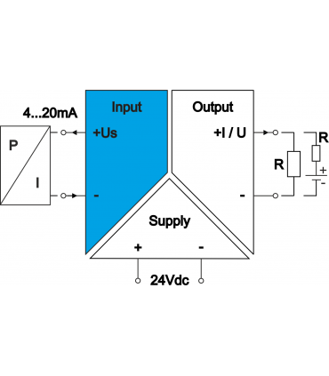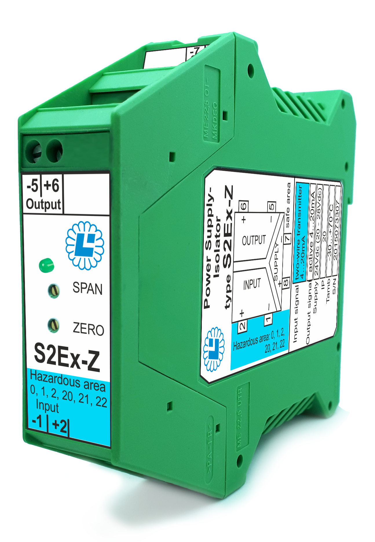 Supplier-separator for two-wire 4...20mA transmitters with HART transmission, input and output active or passive, intrinsically safe barrier Ex Atex