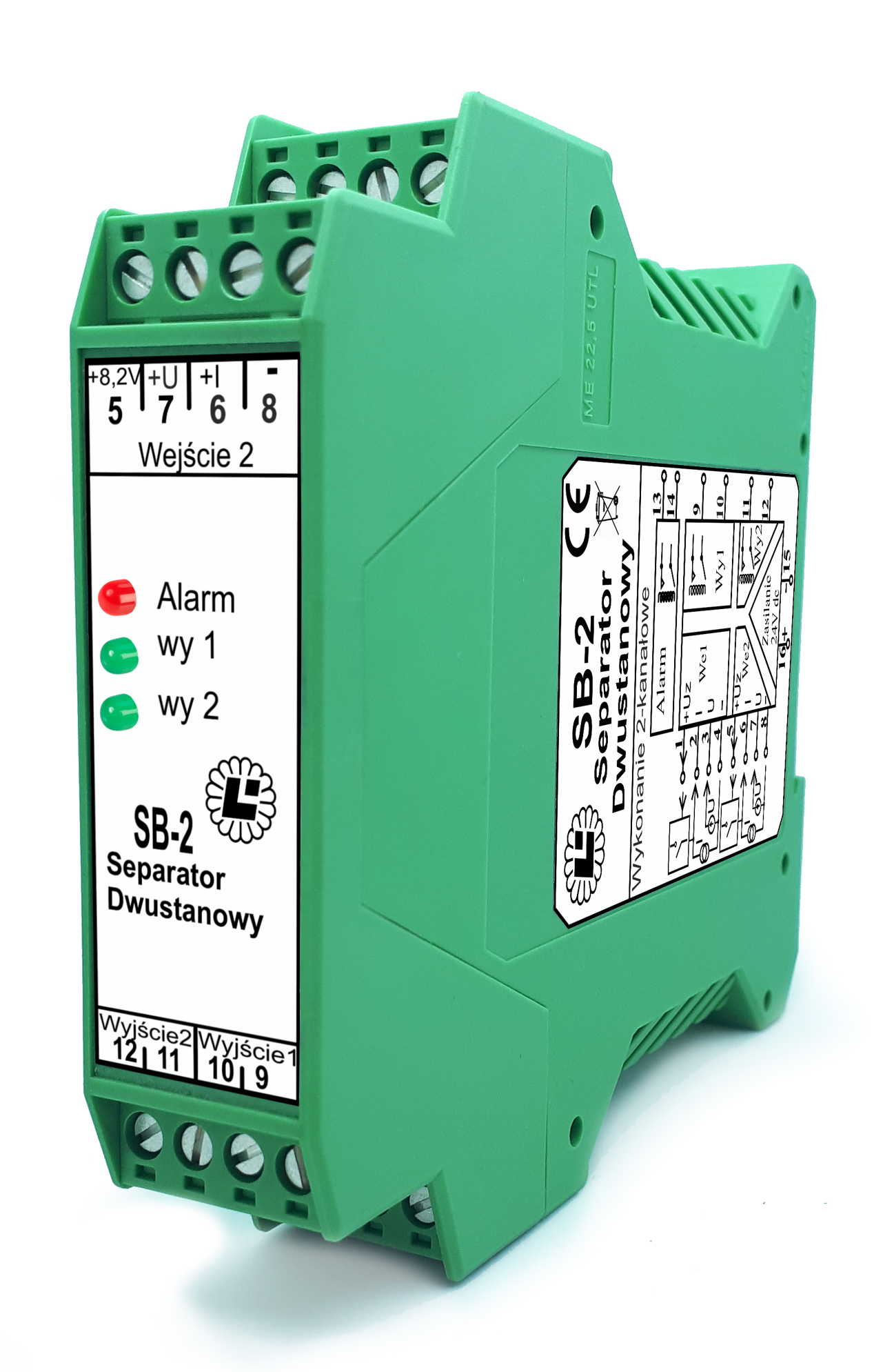 - Input, output and power supply circuits galvanically separated from each other.