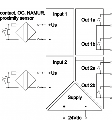 Bistate (binary) repeater duplicator separator, 1 or 2 channels, auxiliary voltage supply 8.2 VDC