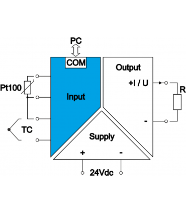 Converter of temperature, resistance, potentiometer position to any standard signal, with intrinsically safe barrier Ex Atex