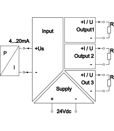 Separator of any analog signals with option for passive output and possibility of connection two-wire transmitter