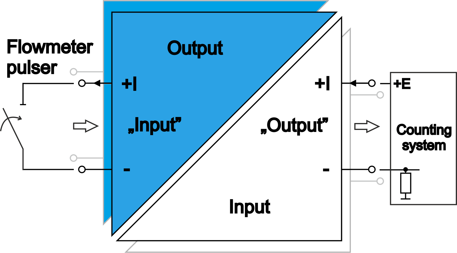 Intrinsically safe output working as "input" with flowmeter's pulser: