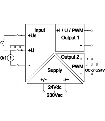• PWM with amplitude 1...24V and frequency 100Hz...100kHz.