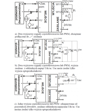 • - device function (conversion of the input analog signal to: pulse frequency, PWM or threshold indication) and its parameters,