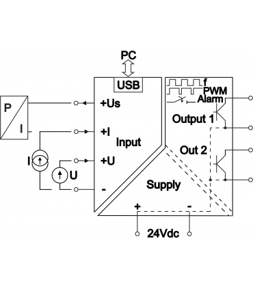 Converter of any standard signal to PWM duty cycle, 2 outputs, programmable via USB