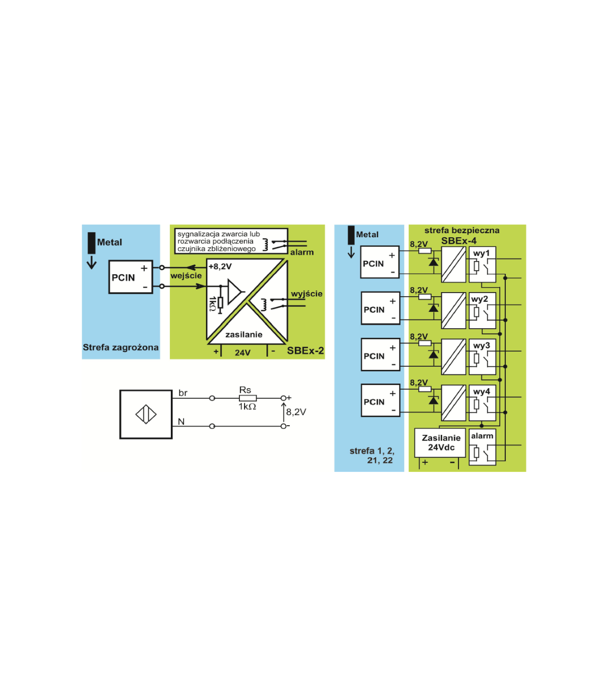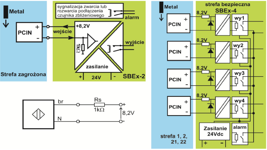 Bistate (binary) separator with intrinsically safe barrier Ex Atex, up to 4 channels, auxiliary voltage supply 8.2 VDC