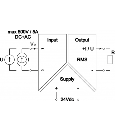- Voltage signal e.g. 0...60mVac, 0...5Vac, 0...10Vac etc. or internal shunt current e.g. 0...1Aac (max 5A).