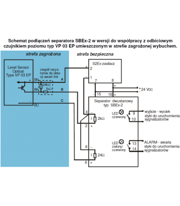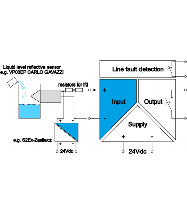 Bistate (binary) separator to operate with liquid level reflective sensor with line damage control, with intrinsically safe barrier Ex Atex, 1 channel