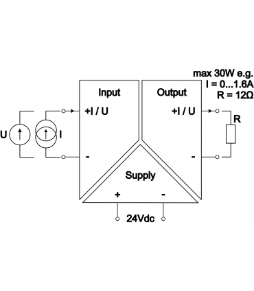 Separator obwodów z wyjściem prądowym lub napięciowym o mocy 30W
