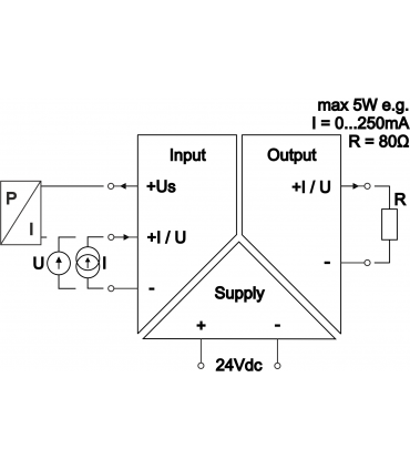 - Dowolny sygnał analogowy: I ≤ 250mA, U ≤ 24V, P ≤ 5W.