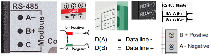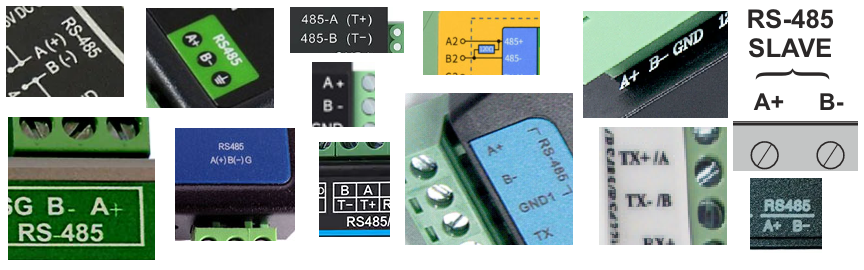 Niezależnie od liter najważniejsza jest polaryzacja linii. Poprawna transmisja RS485 wymaga by wszystkie urządzenia podłączone do magistrali danych miały taką samą polaryzację. Wówczas, przy założeniu jednolitych oznaczeń linii, należy podłączać urządzenia na zasadzie A do A, B do B (czyli wszystkie zaciski A łączymy ze sobą i wszystkie zaciski B łączymy ze sobą). Standard nie określa jednak jasno i jednoznacznie która linia (A czy B) powinna mieć potencjał dodatni, więc producenci różnie to interpretują.