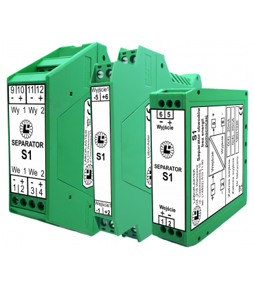 Separator sygnałów 4...20mA, obsługa przetwornika dwuprzewodowego z aktywnego wejścia sterownika bez energii pomocniczej, do 4 torów