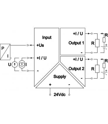 Zasilacz-separator-powielacz dla przetworników dwuprzewodowych 4...20mA, 2 wyjścia