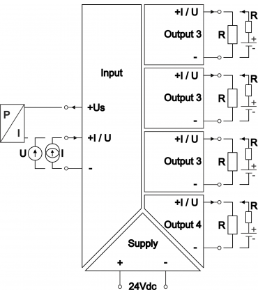 Separator dowolnych sygnałów analogowych z opcją podłączenia przetwornika dwuprzewodowego oraz z opcją wyjścia biernego, do 4 torów