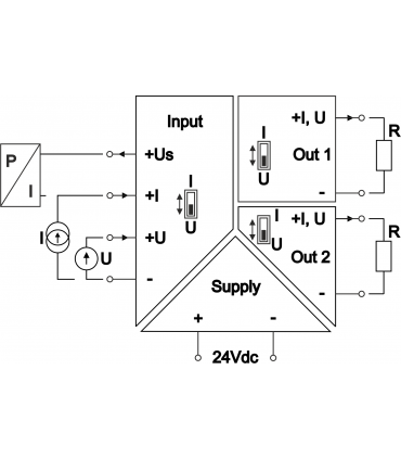 Zasilacz-separator-powielacz dla przetworników dwuprzewodowych 4...20mA, 2 wyjścia