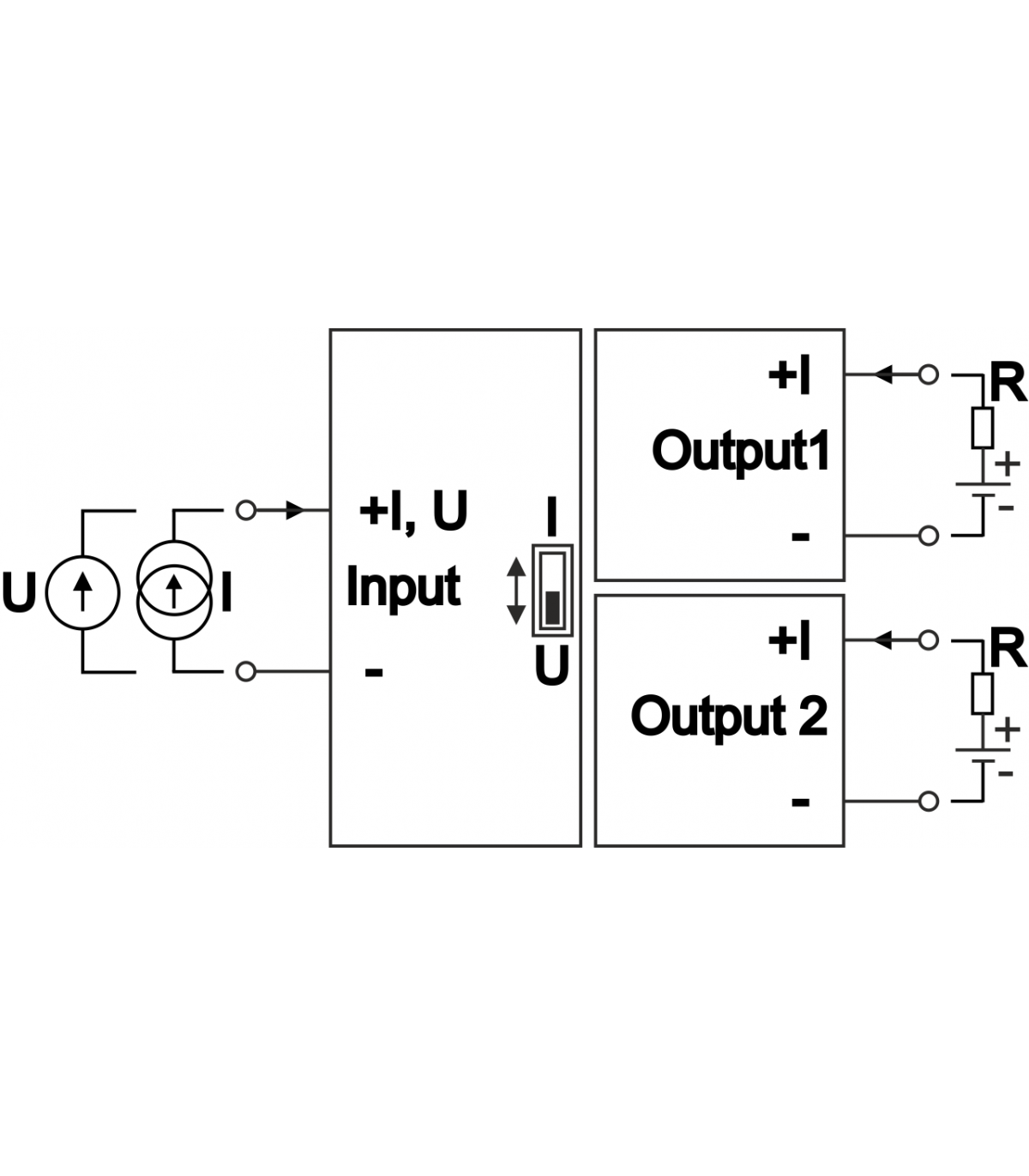 Powielacz-separator analogowy z opcją podłączenia przetwornika dwuprzewodowego oraz z opcją wyjścia biernego, 2 wyjścia