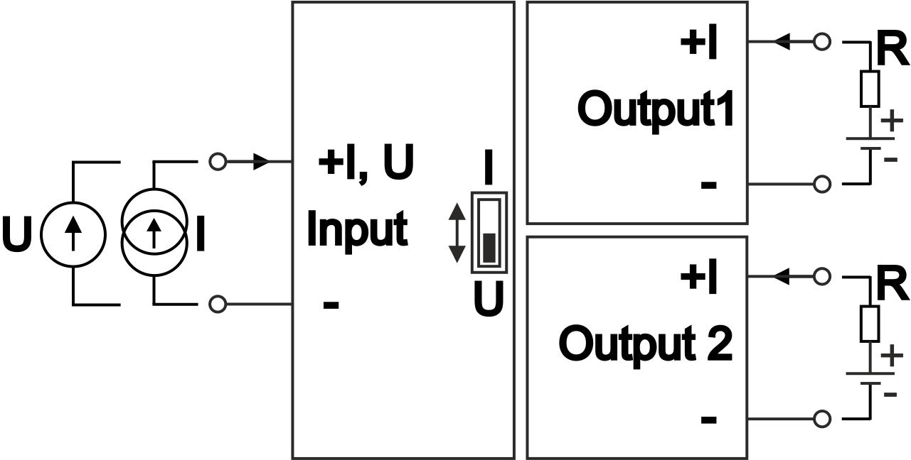Dwuprzewodowy separator sygnału 4...20mA z wejściem uniwersalnym ustawianym przełącznikiem, 2 tory