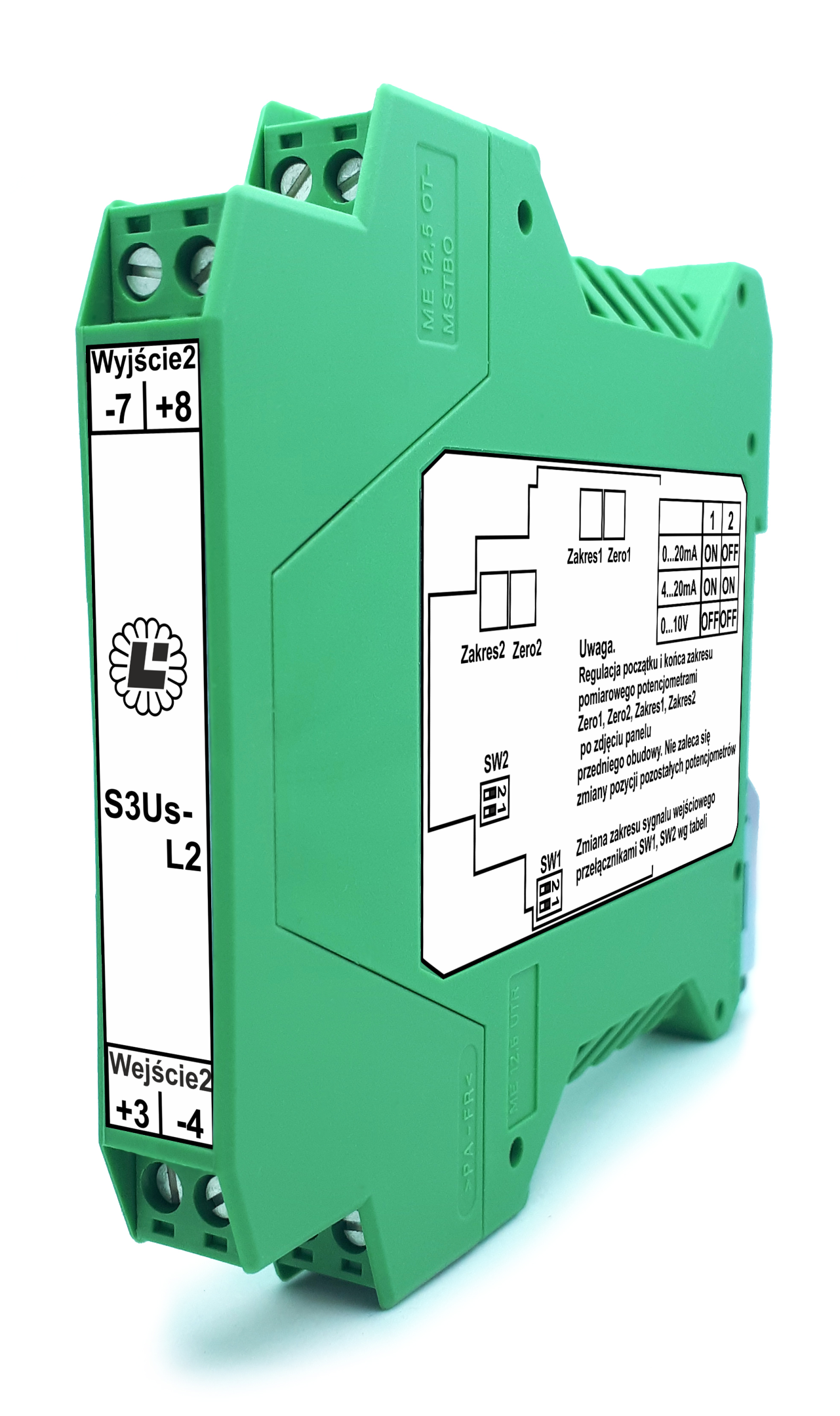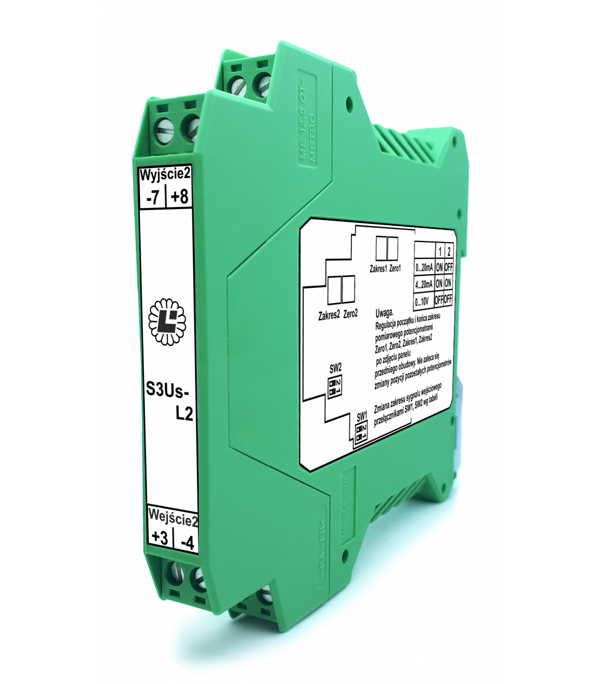 Separator dowolnych sygnałów analogowych z opcją podłączenia przetwornika dwuprzewodowego oraz z opcją wyjścia biernego, 2 tory