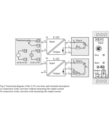 Dwuprzewodowy 4...20mA przetwornik prądu, napięcia