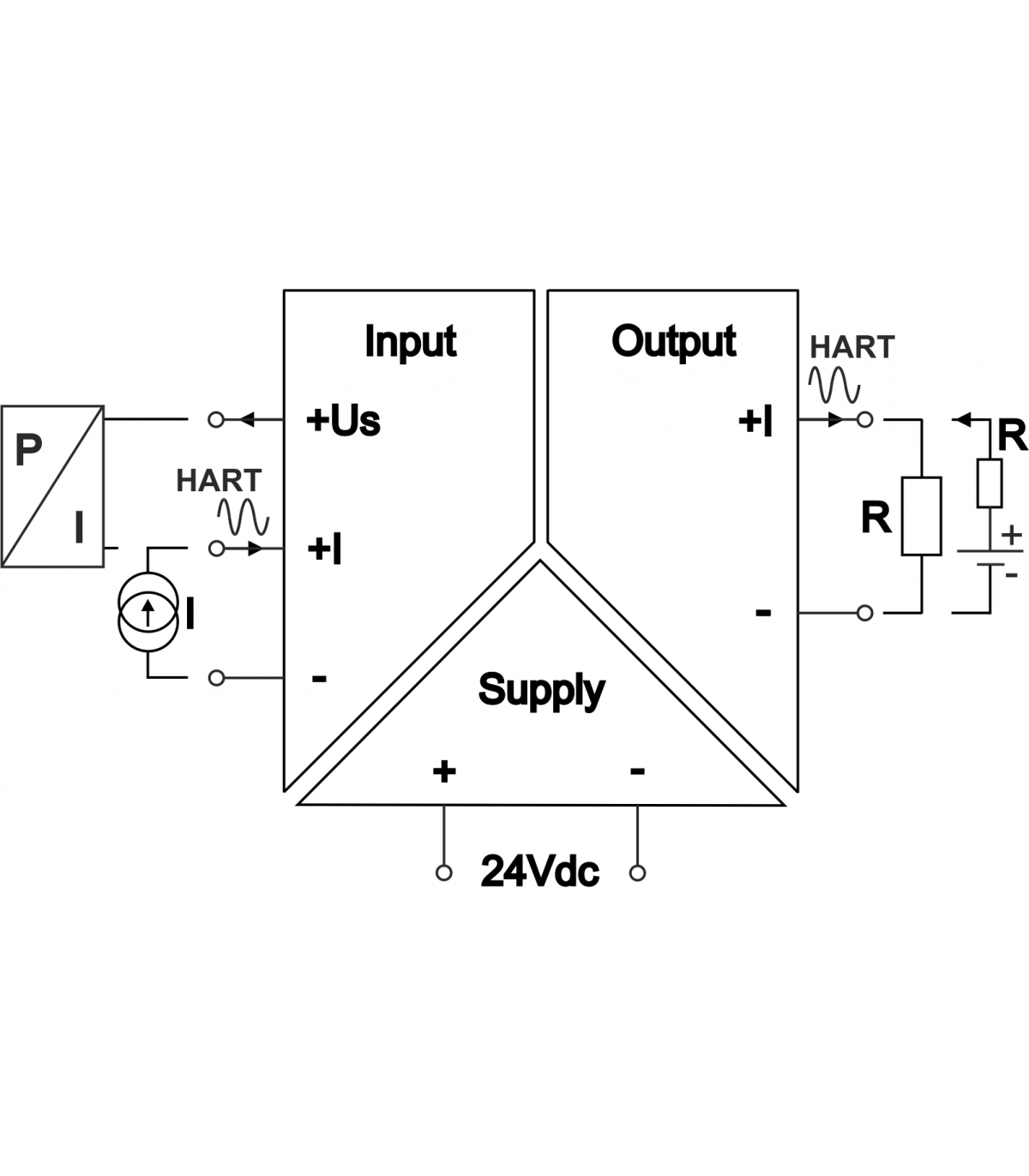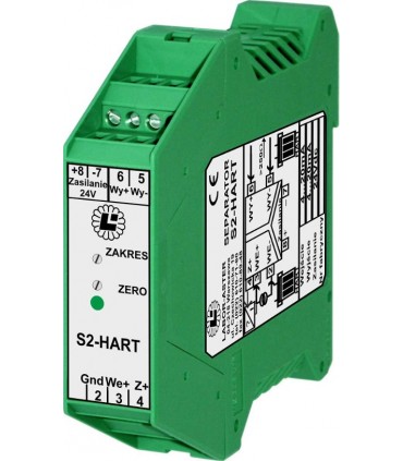Zasilacz-separator dla przetworników dwuprzewodowych 4...20mA z transmisją HART, wyjście aktywne lub bierne
