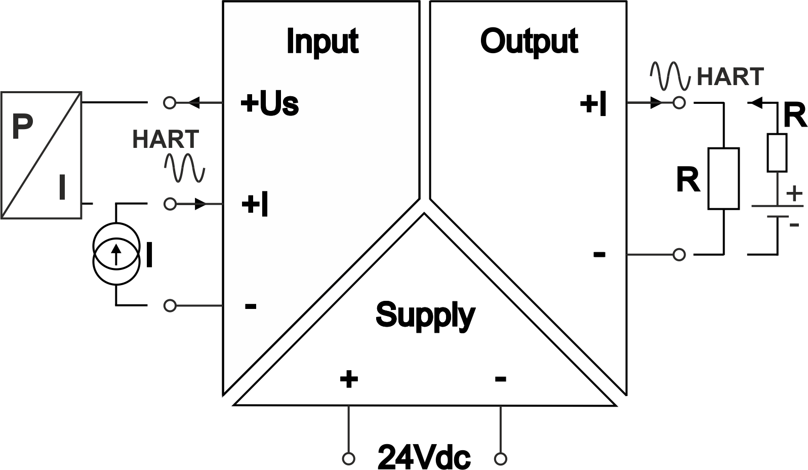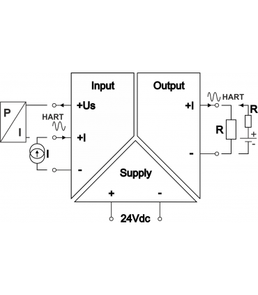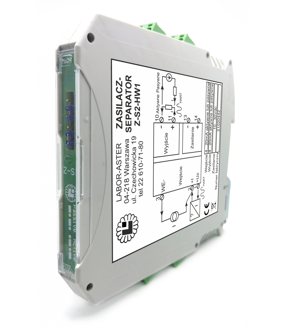 Zasilacz-separator dla przetworników dwuprzewodowych 4...20mA z transmisją HART, wyjście aktywne lub bierne