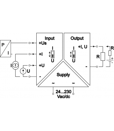 Uniwersalny separator analogowy z sygnałami wybieranymi przełącznikami, z opcją wyjścia biernego, zasilanie uniwersalne