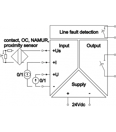 - Czujnik zbliżeniowy NAMUR, styk zwierny bezpotencjałowy, klucz tranzystorowy OC, czujnik Halla, wejście dwustanowe napięciowe lub prądowe.