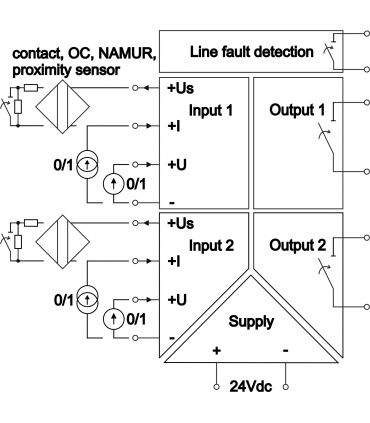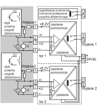 Separator dwustanowy, binarny, alarm uszkodzenia obwodu, 2 tory