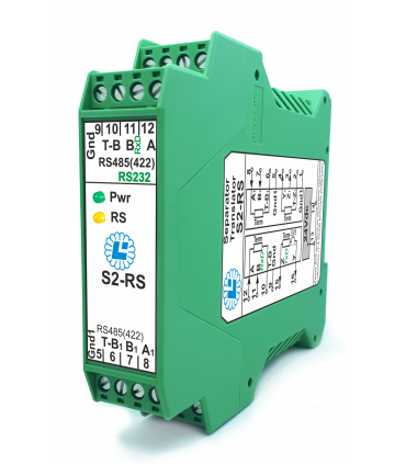 Konwerter-separator transmisji RS485 na RS232, RS485, RS422, wzmocniona odporność na zakłócenia, standard wybierany zworkami
