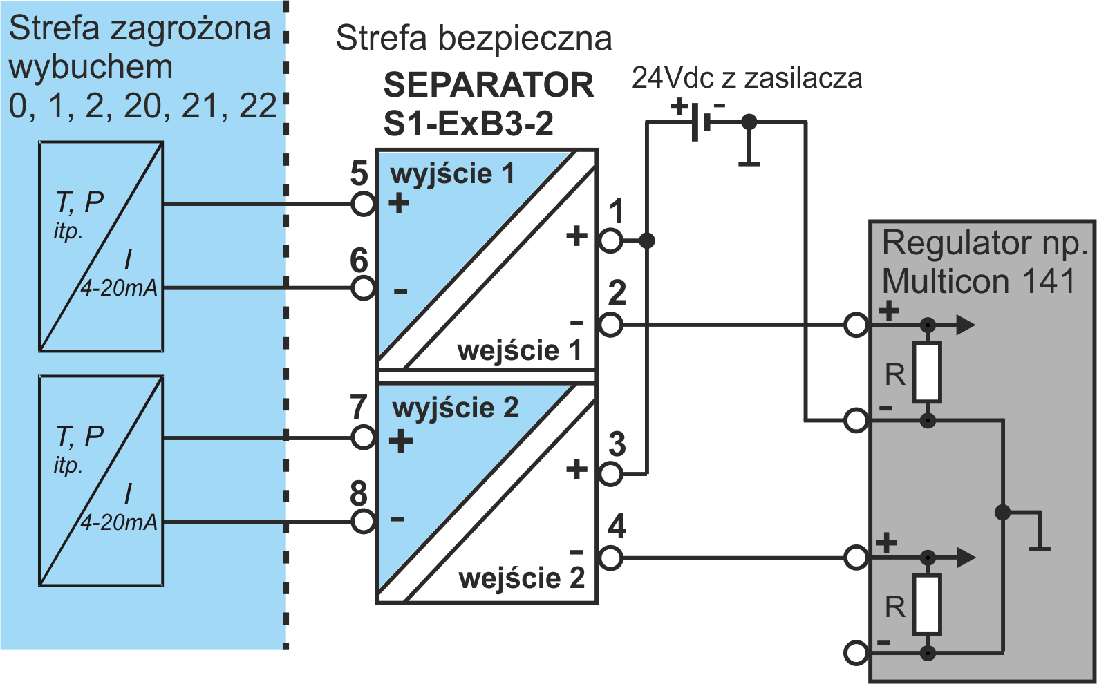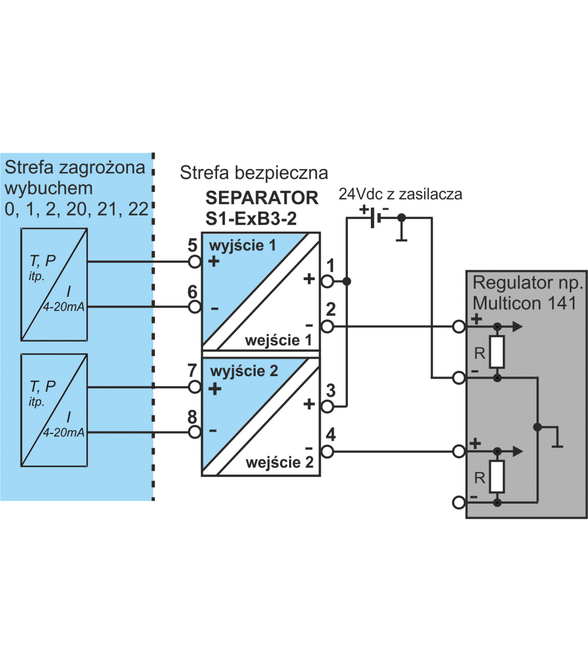 Separator prądowy 4...20mA, bariera iskrobezpieczna Ex Atex