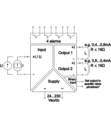 • Obwody wejścia, wyjścia i zasilania wzajemnie odseparowane galwanicznie.