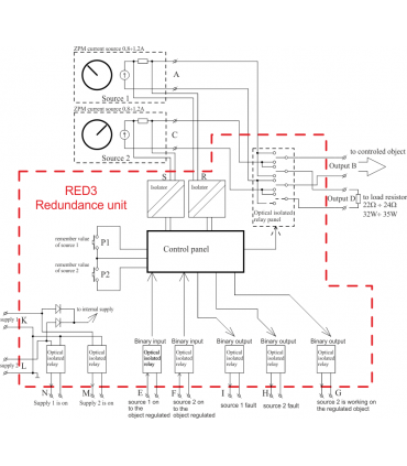 Moduł redundancji do redundantnego podłączenia jednego z dwóch źródeł prądowych ZPM do obiektu regulowanego przez DCS