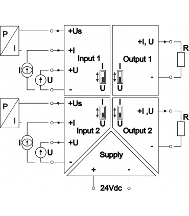 Uniwersalny separator analogowy z sygnałami wybieranymi przełącznikami, 2 tory