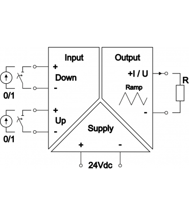 - Sygnał rampy napięciowy 0/2...10V lub prądowy 0/4...20mA, 0/1...5mA.